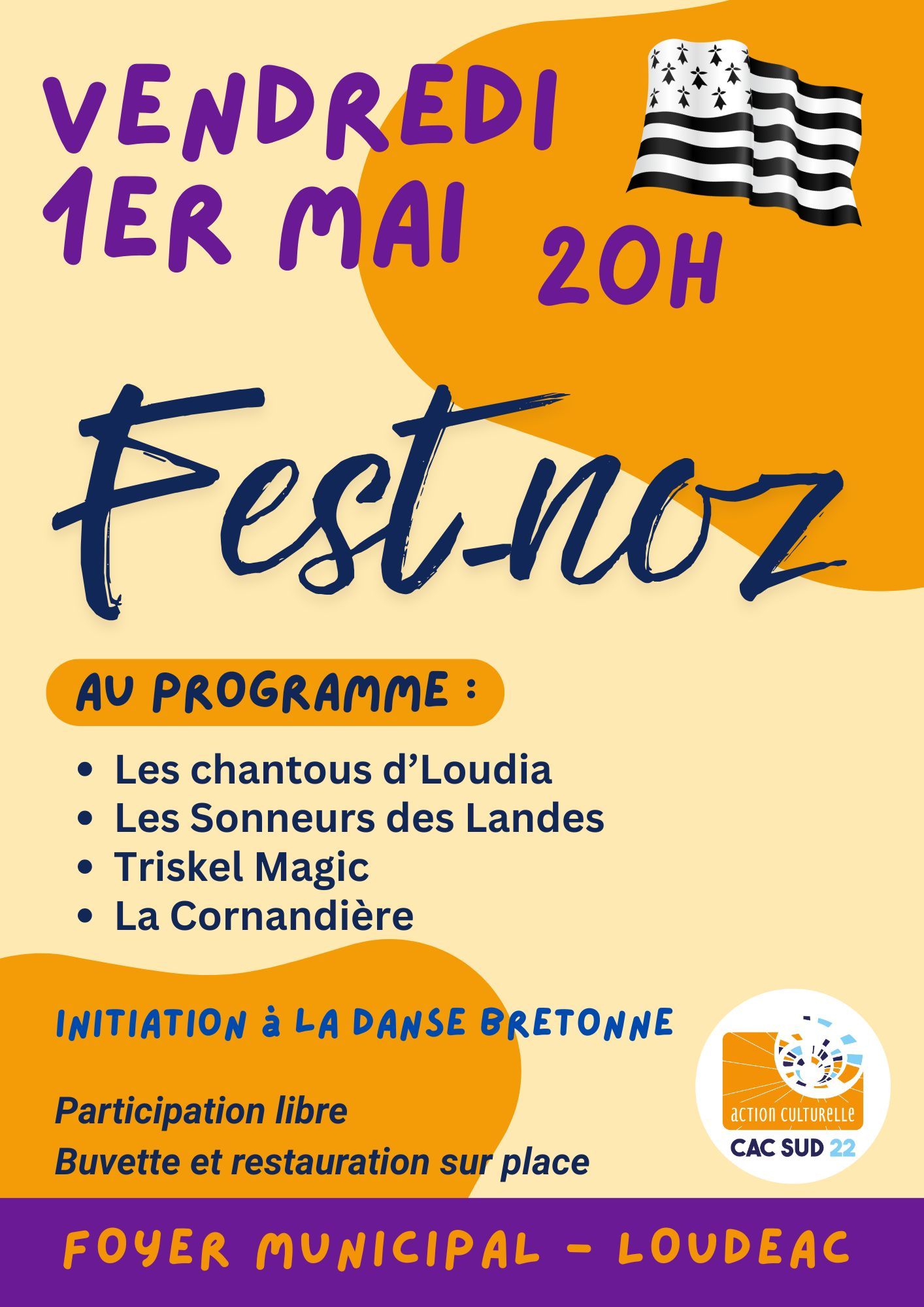 À l'occasion des 40 ans du CAC Sud 22, deux soirées sont organisées les vendredi 1er mai à 20h (Festnoz) et samedi 2 mai à 20h30 (soirée théâtre).