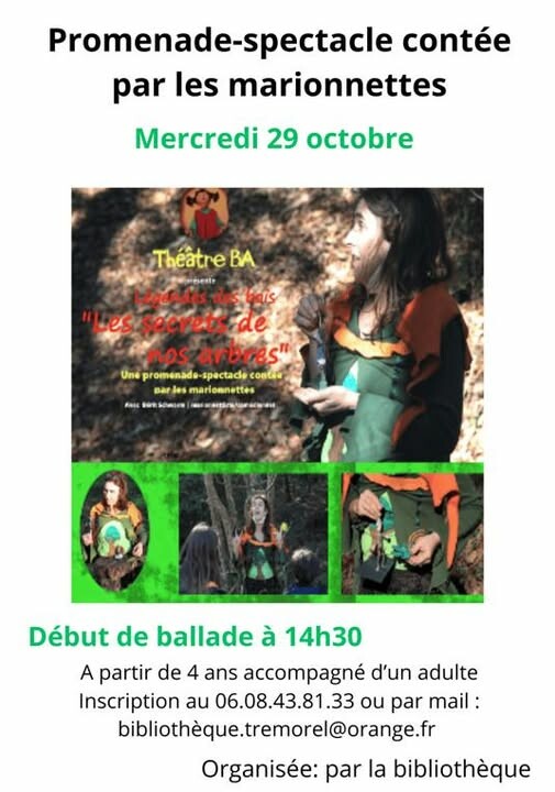 Mercredi 29 octobre, à 14h30, est organisée par la bibliothèque de Trémorel une animation autour d'une ballade contée sur "Les secrets de nos arbres".